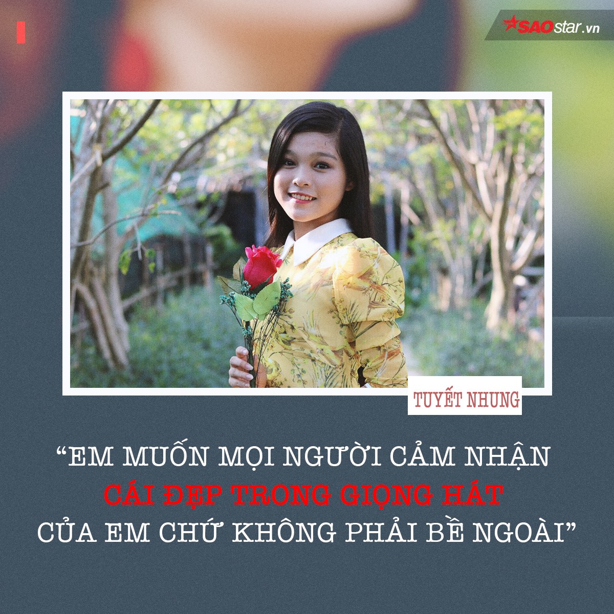 Gia đình khó khăn, cha ruột của Tuyết Nhung từng kiếm sống bằng nghề đánh đàn tại các đám ma, đám cưới. Sau khi cha qua đời, mẹ con Tuyết Nhung phải bươn chải kiếm sống bằng nghề bán vé số. Trớ trêu vì hoàn cảnh quá khó khăn nên Tuyết Nhung chỉ mới học hết lớp 3. Những tưởng giọng ca trẻ này sẽ tự ti, mặc cảm trước bạn bè đồng trang lứa, nhưng em lại lấy đó làm động lực để phấn đấu, cố gắng không ngừng. Và rồi, “phép màu” cũng đến với Tuyết Nhung - cô bé nhỏ nhắn nhưng lại sở hữu chất giọng cảm xúc, chạm đến trái tim người nghe.