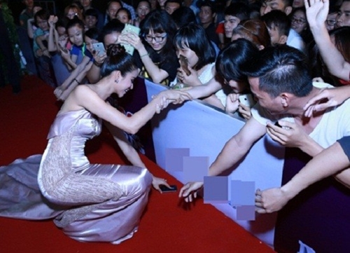 “Hoa hậu quốc dân” Phạm Hương luôn nhận được nhiều sự yêu mến của các fan dù ở bất cứ nơi đâu với tấm lòng đẹp. Tại thảm đỏ một lễ trao giải âm nhạc, Phạm Hương không ngần ngại cúi mình giặt giúp fan chiếc điện thoại rơi.