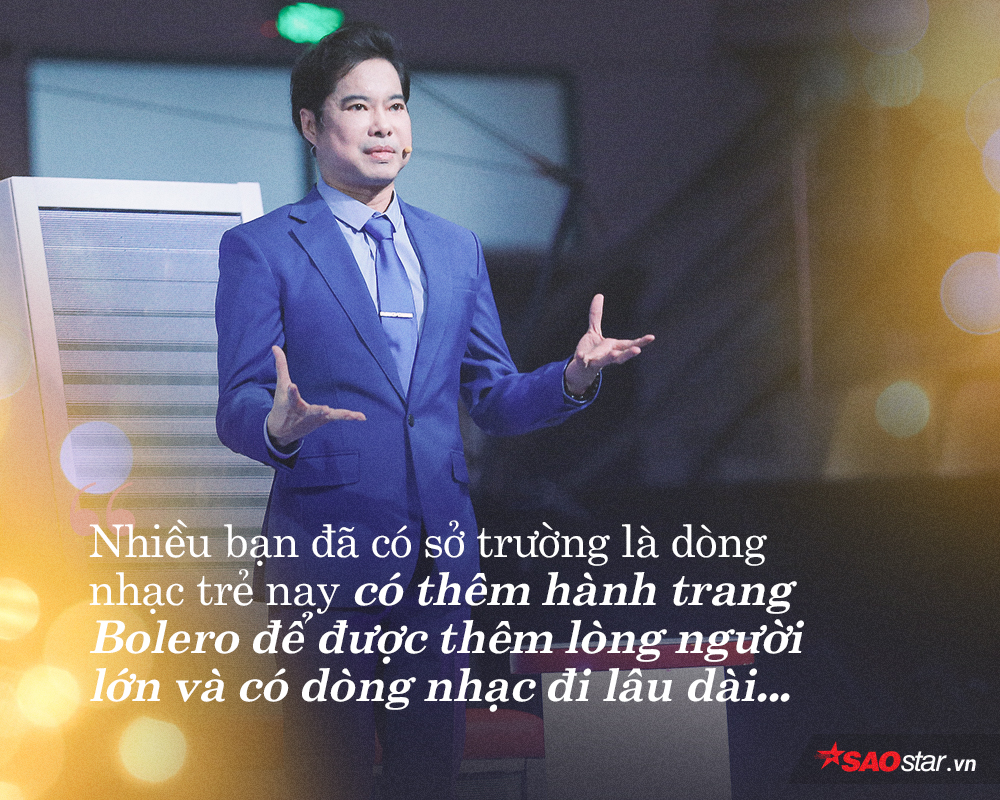 Cuộc sống của chúng ta năng động thì càng phải nên làm dòng Bolero tích cực. Không phải nói ủy mị quá là mình không thích, không cống hiến cho dòng Bolero mà nên nghe theo chiều hướng tích cực. Cái tình trong Bolero là “con quỳ con lạy mẹ cha”, “tình cha ấm áp”… thay vì giáo dục con thì đưa con nghe thì đã dạy thương cha thương mẹ. Tình cảm đó sẽ còn mãi. Dòng nhạc trẻ cũng chẳng mất đi, sẽ còn tồn tại mãi mãi.