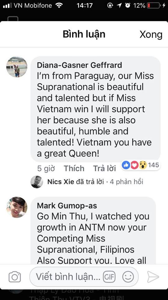 Đoạn clip giới thiệu của Minh Tú được BTC đăng lên trang chủ của cuộc thi Miss Supranational 2018 và đã nhận được sự ủng hộ bất ngờ từ cộng đồng fan sắc đẹp trên toàn thế giới. Với lượt tương tác khủng và “cơn bão” lời khen, Minh Tú đang rất được quan tâm và chú ý tại cuộc thi này. Nhiều khán giả không ngần ngại cho rằng, nếu Minh Tú có chiến thắng cuộc thi năm nay thì điều đó là hoàn toàn hợp lý.