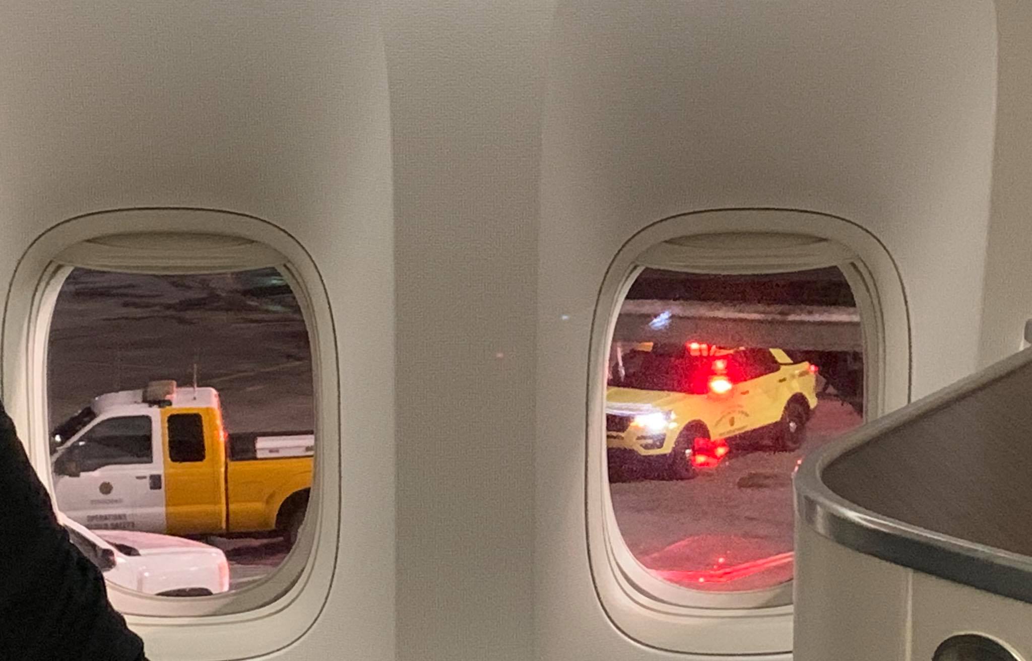 Trở lại sân bay thấy xe cứu hoả, cứu thương hú còi và đón quanh máy bay quá trời. Dự là không biết chừng nào mới được bay đây. Ôi - Họ kêu lấy hành lý vào trong sân bay rồi, không biết khi nào bay đây. Ở Việt Nam đang có bão cả nhà cẩn thận nhé”.