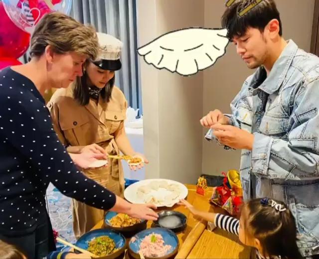Ngoài hình ảnh con nhỏ, hai vợ chồng còn đăng hình cùng nhau gói bánh cảo. Trong ảnh mọi người đều bận rộn phần việc của mình, mỗi người đảm nhận mỗi một công đoạn và không khí rất ấm áp. Sau khi hoàn tất, Châu Kiệt Luân còn đăng tải “kiệt tác” của mình với bà xã.