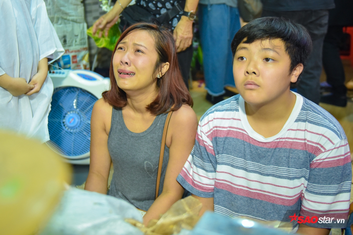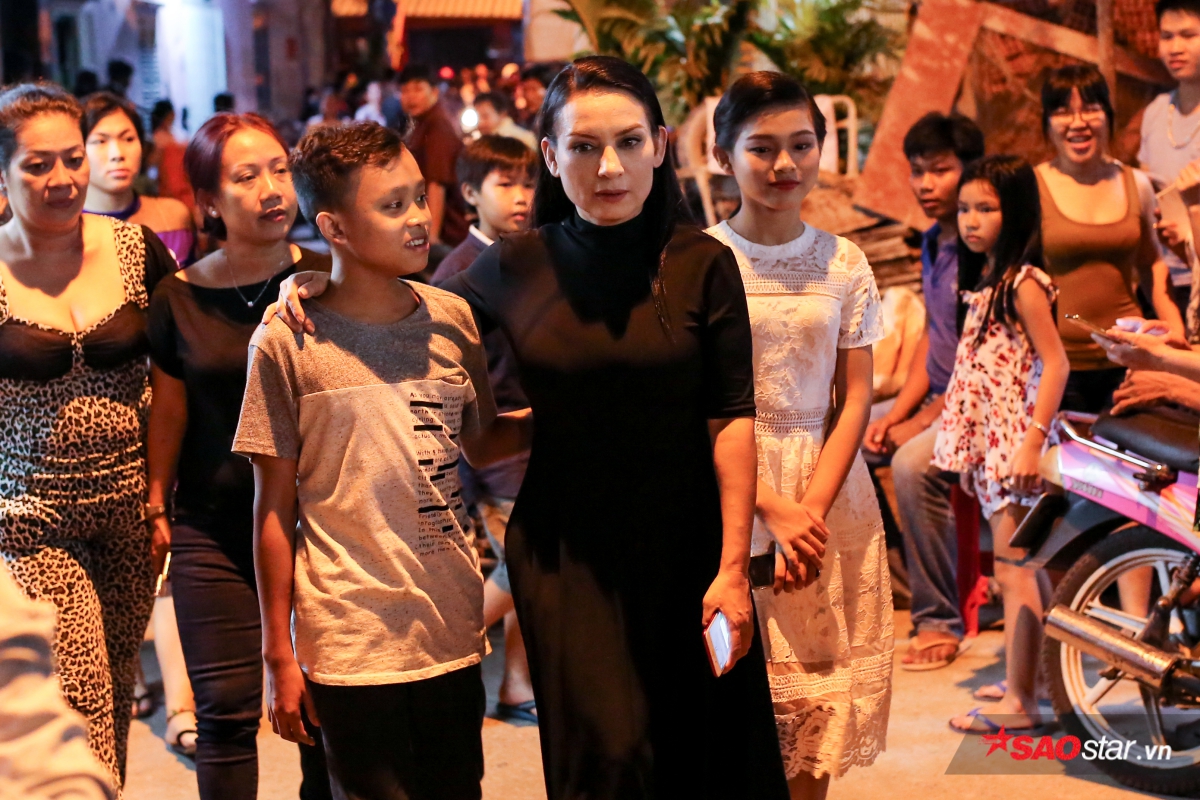 Phi Nhung dắt con trai nuôi Hồ Văn Cường đến thắp nén hương cho nghệ sĩ Khánh Nam.