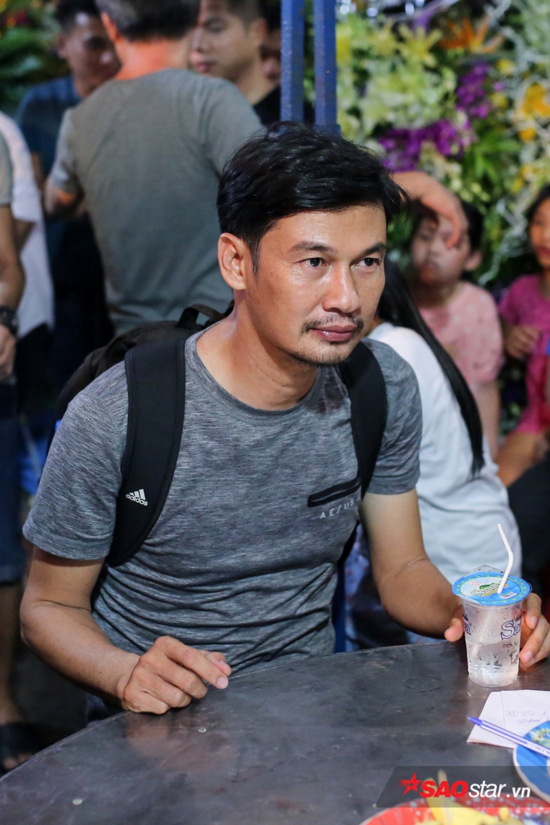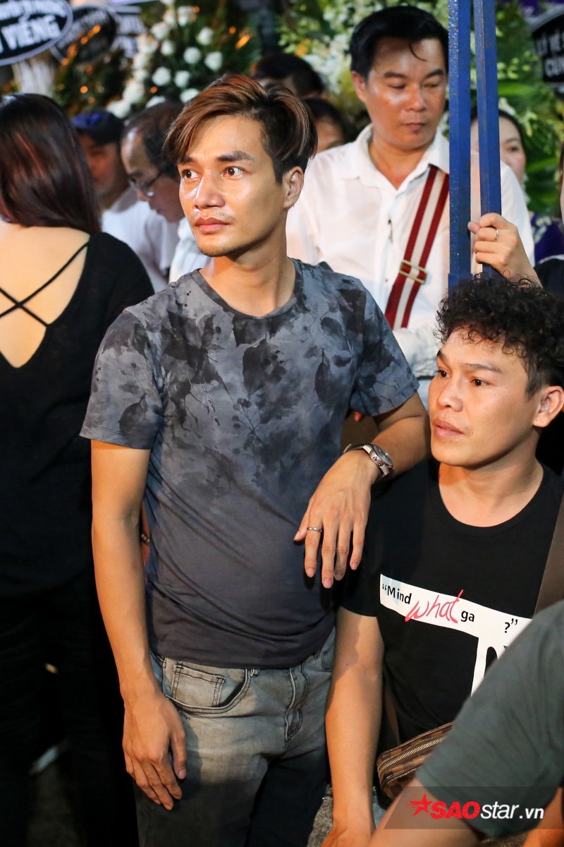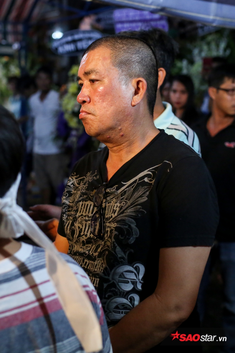 Nhật Cường đau lòng nhìn linh cữu của người đồng nghiệp.