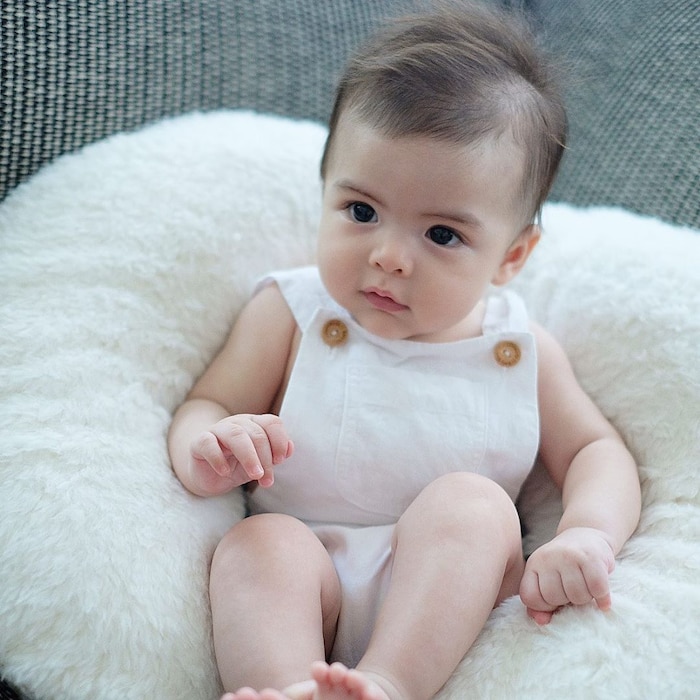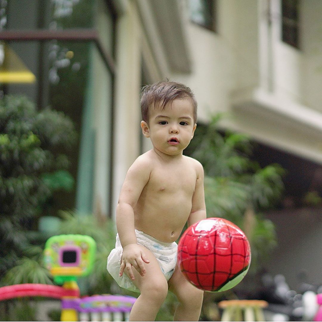 Cậu bé hoàn toàn thừa hưởng những nét đẹp từ bố và mẹ như làn da trắng ngần, đôi mắt to tròn, hàng lông mi dài, sóng mũi cao và chiếc miệng nhỏ xinh