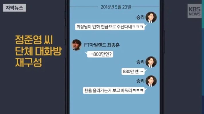 Hơn nữa, Seungri tuyên bố rằng một doanh nhân Nhật Bản đầu tư vào Yoori Holdings đã thanh toán hóa đơn rượu của mình vào ngày ra mắt của quán bar bằng tiền mặt với số tiền lên đến 8.000.000 yên. Họ còn cho rằng: “Thật tuyệt khi luật pháp rất mơ hồ. Vì luật pháp rất mơ hồ, nên cho dù ngay cả khi họ bị bắt, chủ doanh nghiệp cũng có thể nộp đơn khán kiện ngay lập tức”. Các cuộc trò chuyện bổ sung này đã cho thấy được kế hoạch trốn thuế vô cùng tinh ranh Seungri và các thành viên trong nhóm kinh doanh của mình.