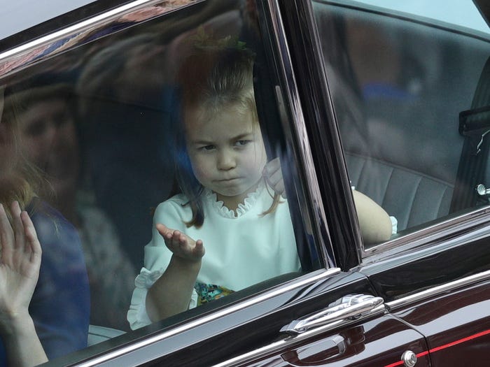 1. Liệu khi thành người lớn, Charlotte có thấy giật mình với kiểu tạo dáng ‘bá đạo’ này khi dự đám cưới hoàng tử Harry và Meghan Markle vào ngày 19/5/2018.