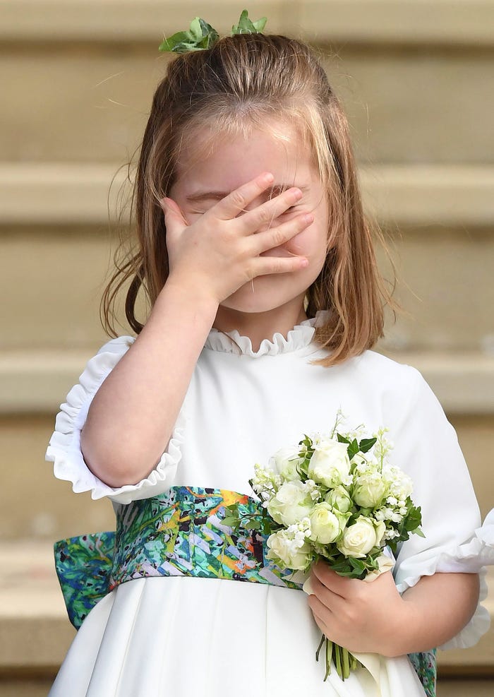 6. Charlotte không phải lúc nào cũng hào hứng khi thấy cánh báo chí. Công chúa nhăn nhó khi nhìn thấy quá nhiều nhiếp ảnh gia chờ đợi bên ngoài nhà nguyện St George trong đám cưới của công chúa Eugenie.
