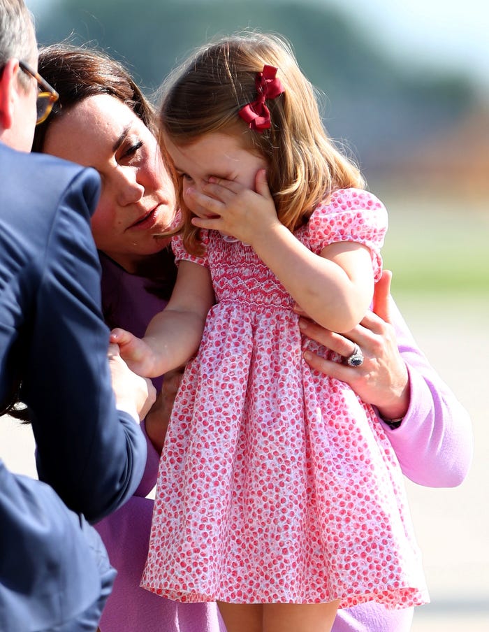 3. Trong bức ảnh này, hoàng tử William, Kate Middleton và Charlotte được trải thảm đỏ chào đón khi đến sân bay Tegel ở Berlin vào tháng 7/2017. Charlotte vừa ôm bó hoa chào mừng vừa khoe biểu cảm ‘ngố tàu’.