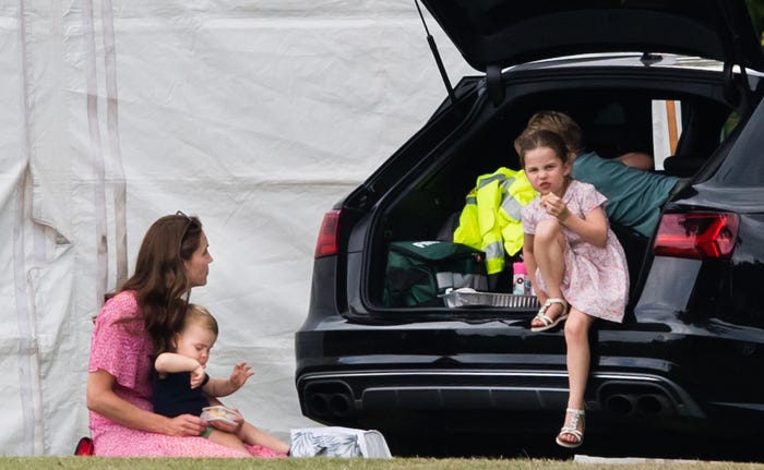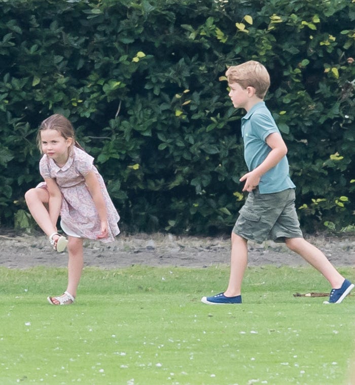 10. Charlotte không ngại đối đầu với quốc vương tương lai của Anh, hoàng tử George. Trong bức ảnh này, hai anh em chạy đuổi nhau trong chuyến thăm Câu lạc bộ Polo Beaufort ở Gloucestershire vào tháng 10 năm 2018.