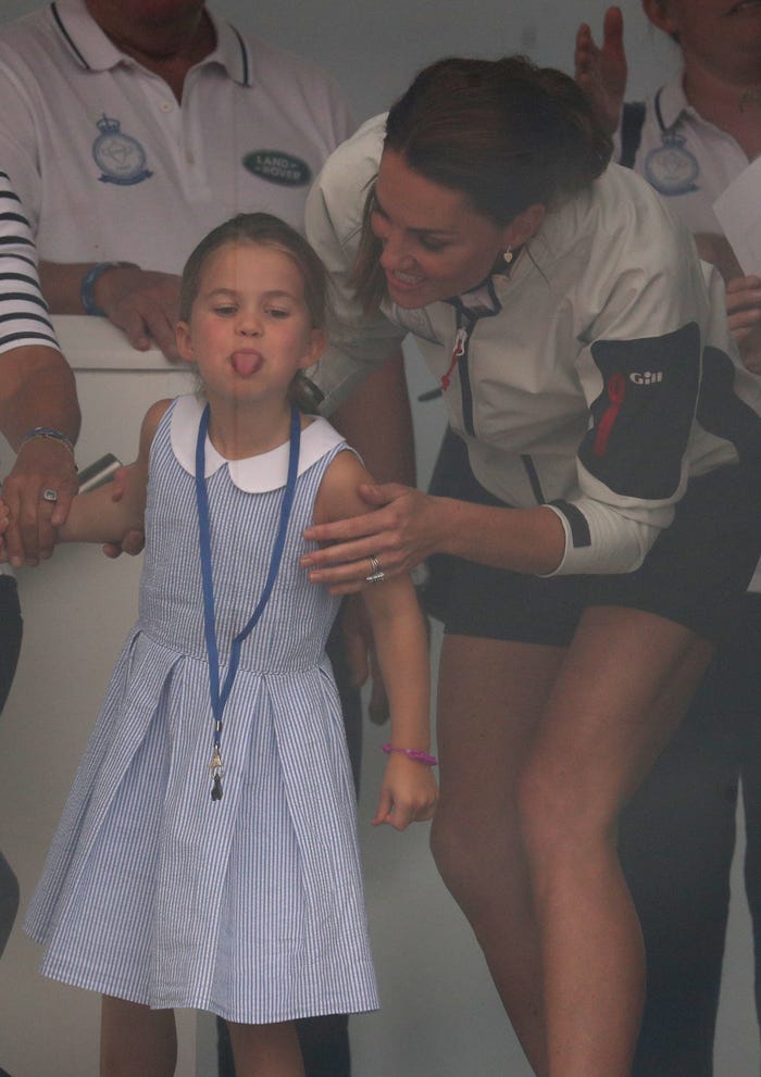 15. Trong một cuộc đua thuyền vào tháng 8, mẹ Kate nhắc cô bé vẫy tay với fan, Charlotte lại thè lưỡi nghịch ngợm.