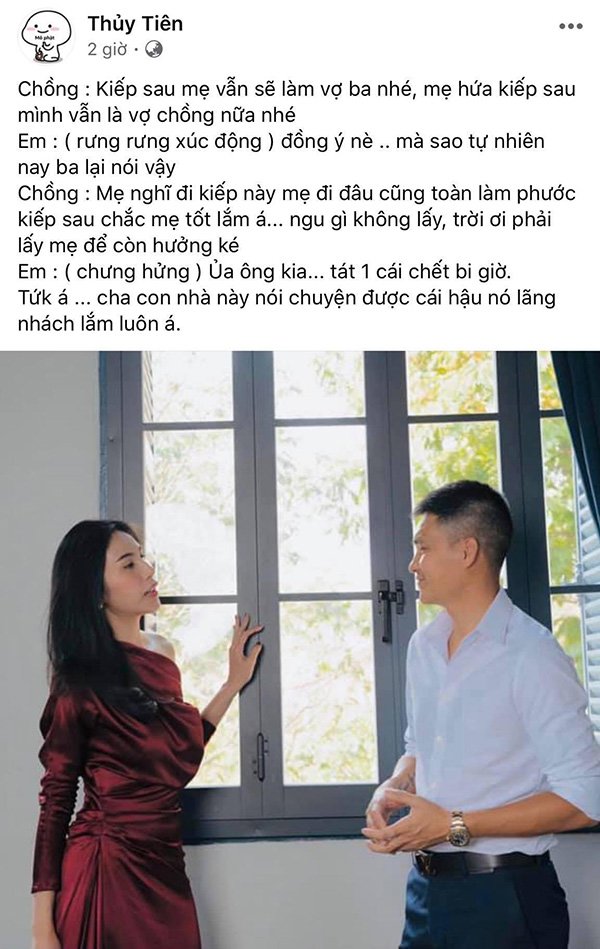Cụ thể, Thủy Tiên kể: “Chồng: Kiếp sau mẹ vẫn sẽ làm vợ ba nhé, mẹ hứa kiếp sau mình vẫn là vợ chồng nữa nhé!
