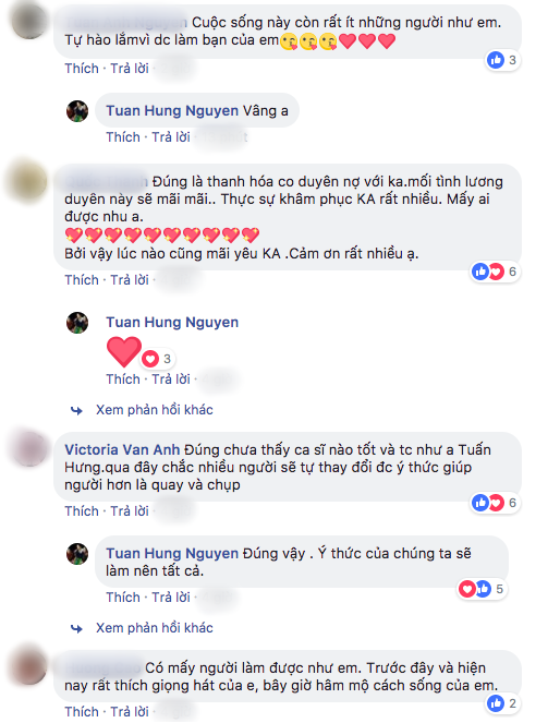 Phía dưới bình luận, cư dân mạng bày tỏ sự ngưỡng mộ và tự hào khi thần tượng không chỉ hát hay mà còn có tấm lòng nhân hậu. Dù chỉ là người qua đường, Tuấn Hưng vẫn không ngại dừng lại giúp đỡ, đưa vào bệnh viện kịp thời, giúp nạn nhân giữ được mạng sống.