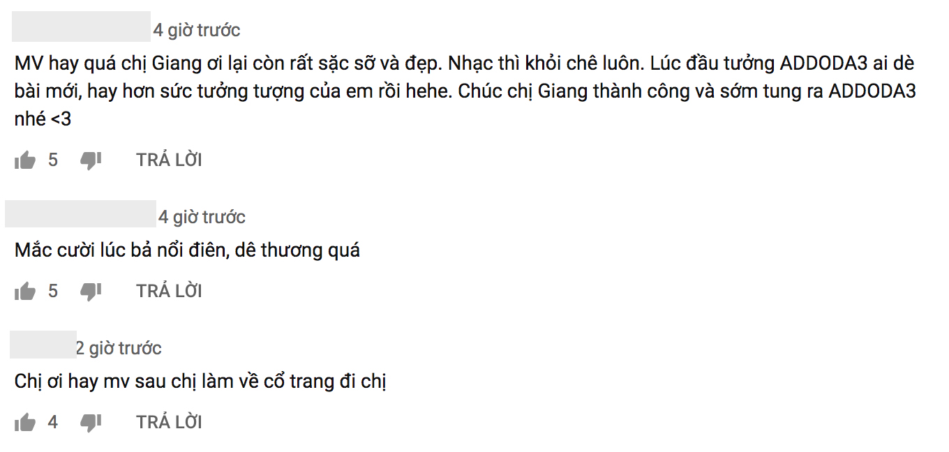 Bên cạnh nhưng bình luận chê thì vẫn có một bộ phận khán giả yêu thích ca khúc này của Hương Giang.
