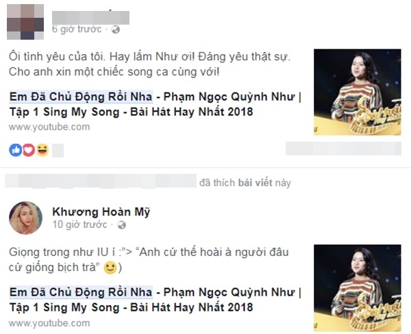 Sau tập 1 Sing My song - Bài hát hay nhất 2018 lên sóng, newsfeed Facebook của nhiều bạn trẻ tràn ngập chia sẻ về những bài hát được ra mắt trong tập 1. Trong số đó, Em đã chủ động rồi nha của cô nàng Phạm Ngọc Quỳnh Như gần như là ca khúc vừa được yêu thích và nhắc đến nhiều nhất.