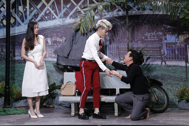 Nhập vai thành kẻ hát rong và bán kẹo kéo dưới gầm cầu kiếm tiền sống qua ngày, Đức Phúc thể hiện mình là người khá “lành nghề” khi liên tục bày cho Trường Giang chuỗi mẹo để kiếm tiền nhanh. Nhưng vì câu nào cậu nói ra đều “đỉnh” nên khán giả và cả giám khảo Hoài Linh đều bật cười nghiêng ngả.