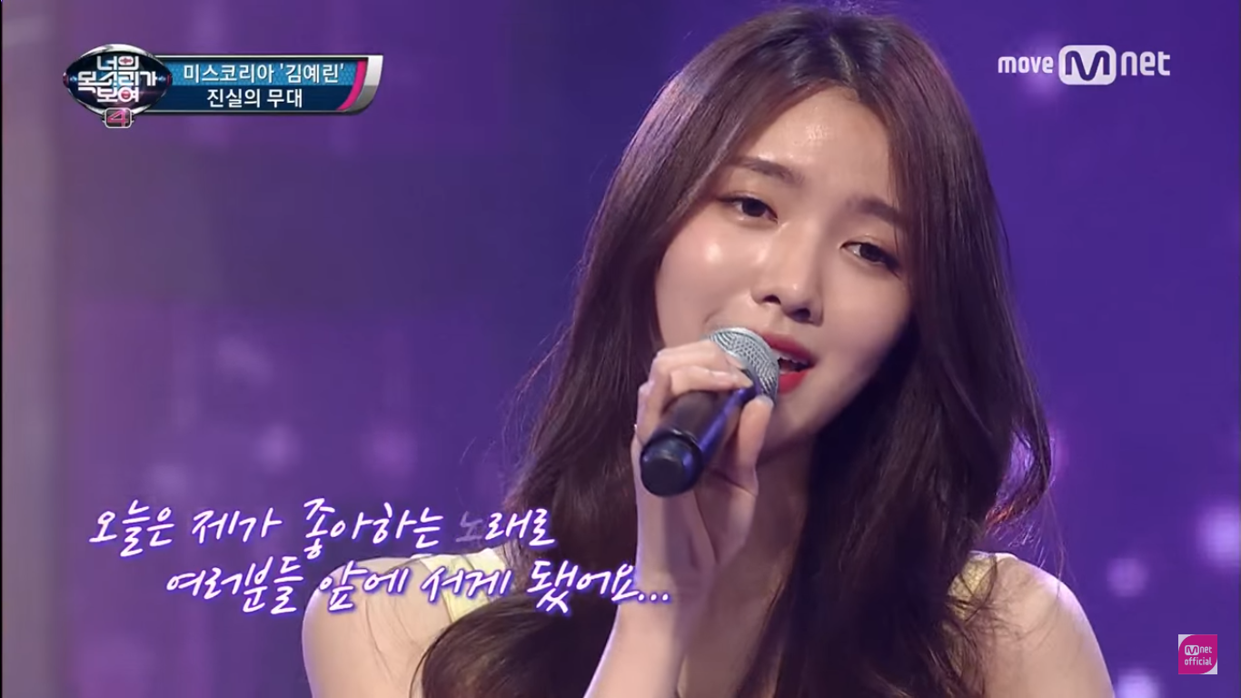 Được biết, cô nàng tên là Kim Yerin và là Hoa hậu Hàn Quốc năm 2015. Ca khúc được cô nàng chọn thể hiện là Waiting của nữ ca sĩ Yoonha rất sâu lắng tuyệt vời .