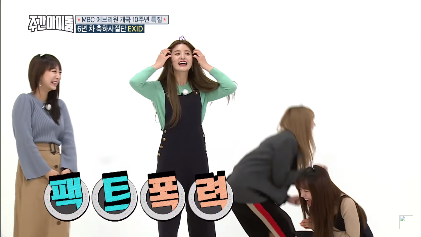 Mới đây EXID lại tiếp tục góp vui trong tập đặc biệt của Weekly Idol khiến 2 ông chú MC cười đến điên đảo bởi những “tuyệt chiêu không đụng hàng” của các cô em gái. Đặc biệt, lần này không phải là “Thánh Hani” mà là bộ đôi Hyelin và Junghwa trở thành tâm điểm của show.