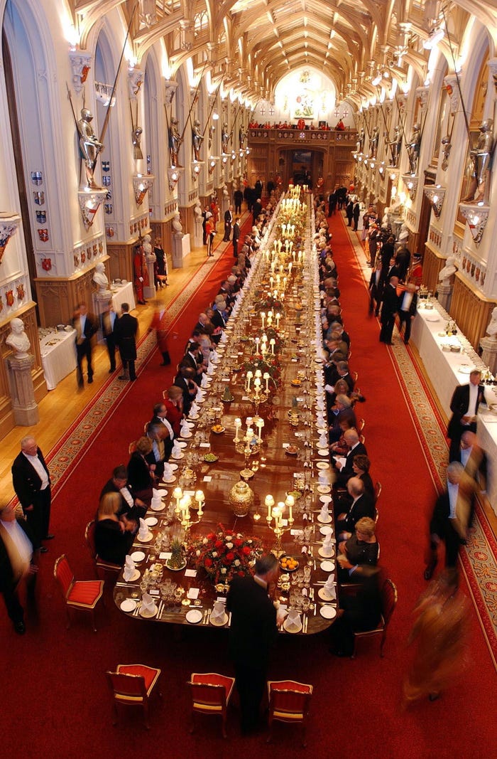 Giống như phòng Throne của Buckingham Palace, St George's Hall thường được sử dụng để tổ chức các bữa tối cao cấp. Chúng ta sẽ không được thấy căn phòng tấp nập thế này trong vài tháng nữa.