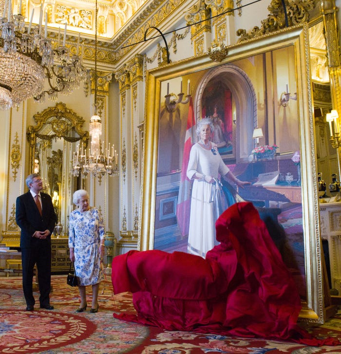 Trong phòng có một bức tranh khổng lồ vẽ Nữ hoàng.