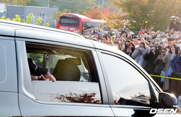 GD mở cửa kính chào người hâm mộ trước khi rời đi.