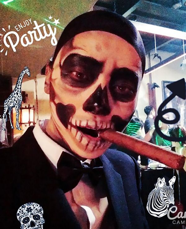 Thật không thể nhận ra đây là Ngô Thanh Vân với hóa trang hình sọ người đáng sợ, đi chơi Halloween ở Mỹ.