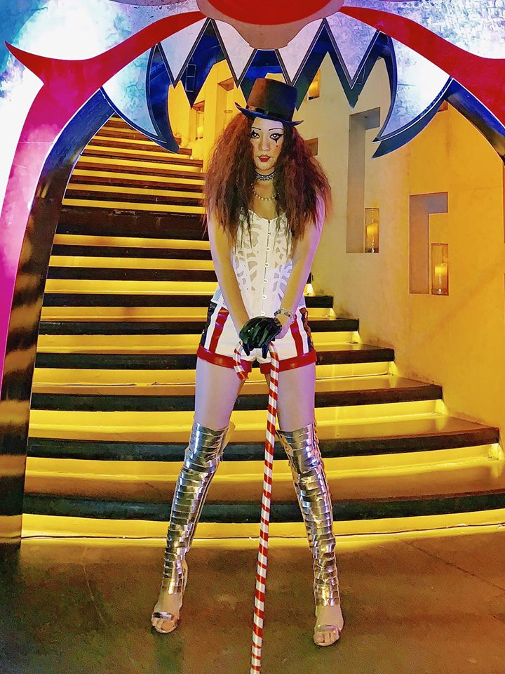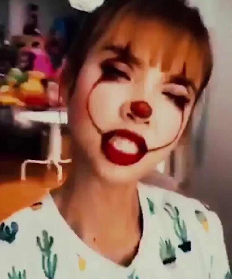 Có thể thấy mùa lễ hội này Băng Di chơi vô cùng lớn khi cô nàng còn hoá thành nhân vật chú hề ma quái.