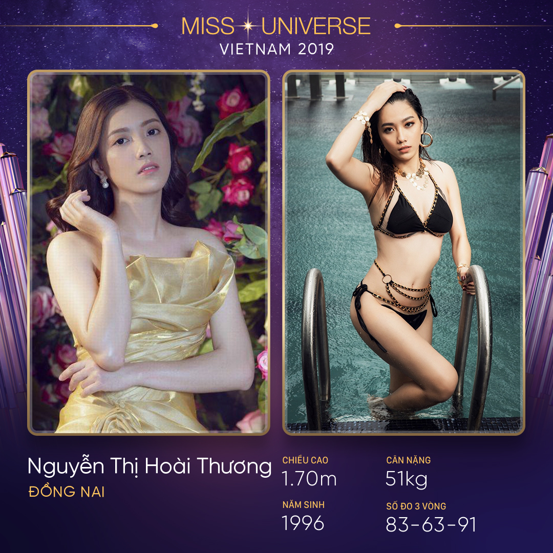 Nguyễn Thị Hoài Thương hiện đang là chuyên viên tư vấn tài chính tại một công ty nước ngoài, người đẹp “hạ quyết tâm” tập luyện, đi gym, không tham gia bất kỳ một cuộc thi sắc đẹp nào khác chỉ để đợi cơ hội được tỏa sáng tại Miss Universe Vietnam. Người đẹp cho biết Hoa hậu Hoàn vũ 2008 - Thùy Lâm chính là hình tượng mà cô ngưỡng mộ, mong muốn được thay đổi và thể hiện bản thân như cựu hoa hậu đã từng làm được.