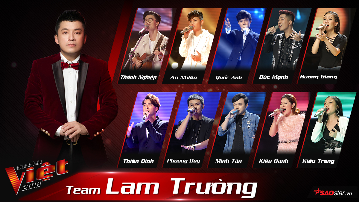 Lần đầu tiên ngồi “ghế nóng” nhưng HLV Lam Trường đã nhanh chóng chứng minh mình không kém cạnh các HLV còn lại trong việc thuyết phục thí sinh và mang về đội hình những “gà cưng” tiềm năng nhất theo đúng màu sắc và định hướng mà anh mong muốn. Ở team Lam Trường có thể thấy, các thí sinh đều là những ẩn số thú vị, mà khán giả hoàn toàn có thể trông đợi sự đột phá và bùng nổ trong vòng Đối đầu - khi đường đưa loại trực tiếp chính thức lên sóng.