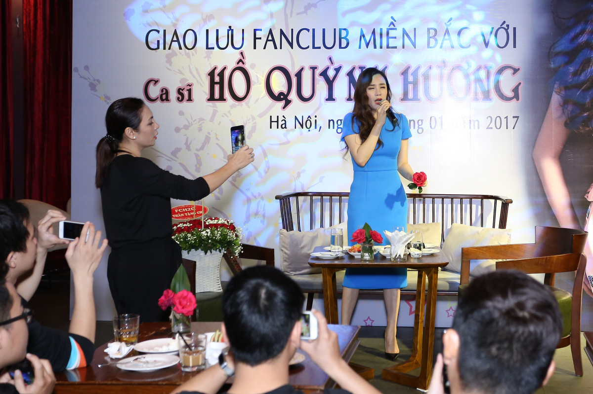 Nhân chuyến biểu diễn của Hồ Quỳnh Hương ở Hà Nội, chiều 8/1, fan club của nữ ca sĩ đã tổ chức buổi giao lưu ấm cúng với các fan thân thiết nhất. Hồ Quỳnh Hương tỏ ra khá bất ngờ vì dù chuẩn bị rất gấp rút, buổi họp fan vẫn diễn ra một cách chu đáo và trơn tru.