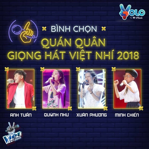 Ngay bây giờ, khán giả có thể bình chọn để thí sinh mình yêu thích nhất giành ngôi vị quán quân Giọng hát Việt nhí 2018 tại ứng dụng YOLO. Đừng quên đón xem đêm thi chung kết xếp hạng The Voice Kids mùa thứ 6 diễn ra lúc 21h15 ngày 29/12 trực tiếp trên VTV3 và Fanpage SAOStar nhé!