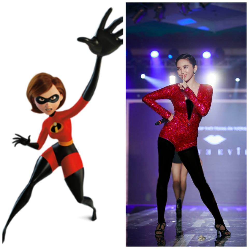 Tóc Tiên được cái fan cho biến hình Elastigirl khi mặc một bộ trang phục khá là giống với nhân vật. Điều thú vị hơn là cả hai đều có mái tóc ngắn, luôn tràn trề năng lượng, sức khoẻ dẻo dai và đặc biệt hơn chính là ở cả hai cô gái này đều có khao khát được khám phá thế giới và luôn cách cách chớp lấy những cơ hội quý báu trong cuộc sống.
