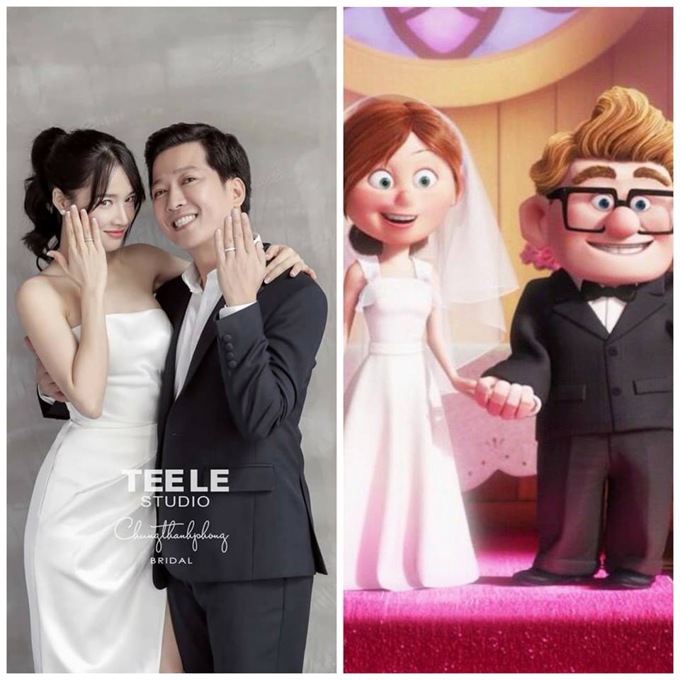 Và cuối cùng là một sự ghép đôi vô cùng dễ thương đối với các nhân vật trong hình. Trường Giang và Nhã Phương là một cặp còn Carl và Ellie là một cặp. Cả bốn người đều rất vui mừng và hạnh phúc trong ngày hạnh phúc của mình. Trong bộ phim Up, Carl và Ellie đã sống bên nhau trọn đời và hạnh phúc dài lâu thì qua sự so sánh này, các khán giả cũng mong rằng Trường Giang và Nhã Phương cũng sẽ mãi hạnh phúc cùng nhau.