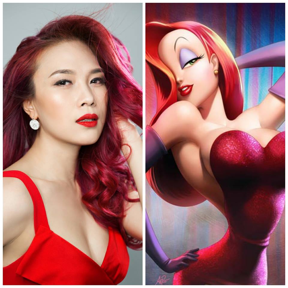Nhiều khán giả bị “sốc” khi Mỹ Tâm được so sánh với một trong những nhân vật hoạt hình gợi cảm nhất của Disney - Jessica Rabbit. Jessica Rabbit là vợ của thỏ Roger Rabbit trong bộ phim hoạt hình Who Framed Roger Rabbit sản xuất năm 1988. Với mái tóc óng ả, chiếc váy đỏ xẻ cao và đôi găng tím của Jessica đã giúp cô trở thành một trong những biểu tượng nhất của các bữa tiệc hóa trang. Mỹ Tâm trong tấn hình trên cũng có mái tóc đỏ, áo xẻ cao, vòng 1 đẫy đà và biểu cảm quyến rũ nên đã khiến các fans của mình liên tưởng đến nhân vật này.