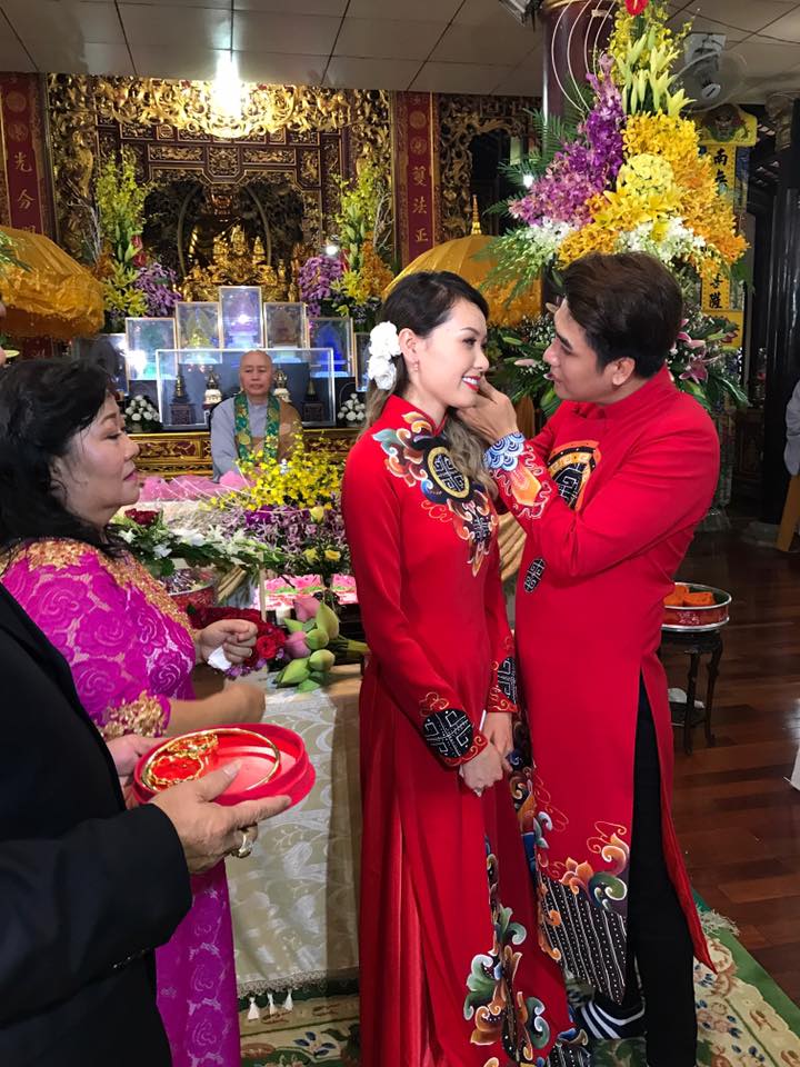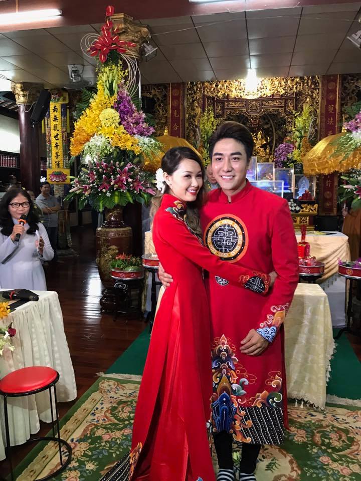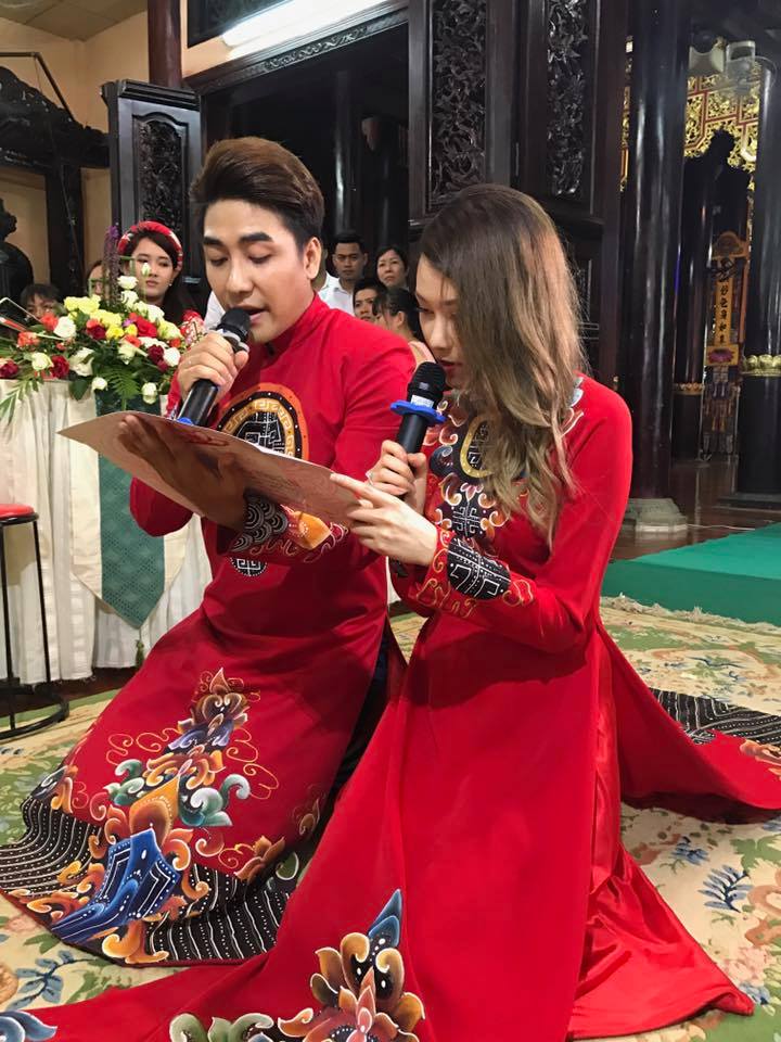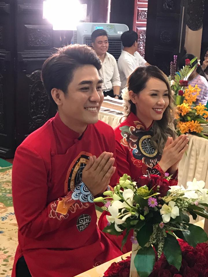 Huy Nam và bà xã Vy Hiền trong lễ cưới hằng thuận.