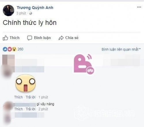 Tháng 8 vừa nghe-đồn-là-kết-hôn, thì tháng 10: chính thức ly hôn - đây là dòng status trên facebook của Trương Quỳnh Anh đã kịp ghi lại, dù cô đã xóa đi ngay sau ít phút đăng đàn.