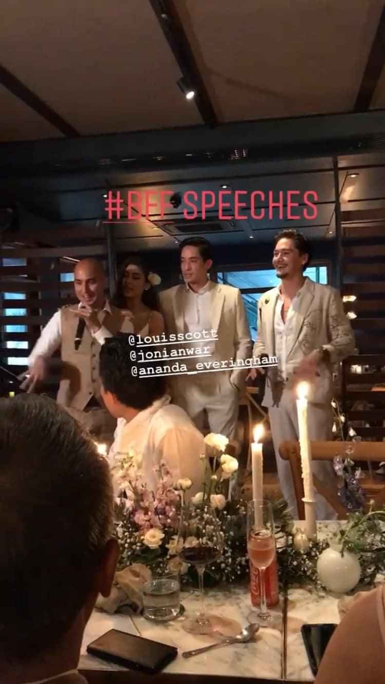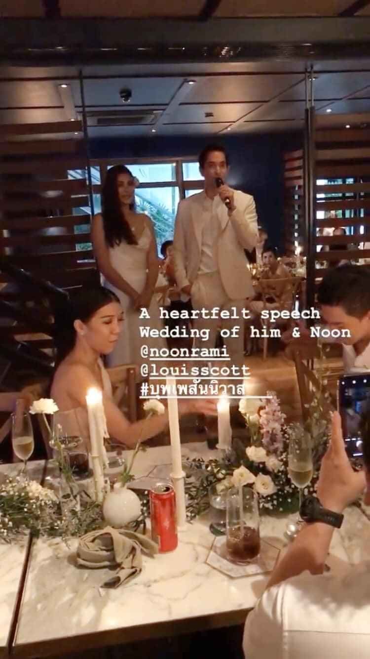 hay vì một đám cưới lớn từ không gian đến khách mời như nhiều cặp đôi nổi tiếng khác thì đám cưới của Louis Scott và Noon Ramida hoàn toàn ngược lại. Bữa tiệc cưới được trang trí bởi những tấm hình cưới đơn giản ở giữa có ký hiệu LR là tên viết tắt của cô dâu chú rể. Bữa tiệc cưới tuy không lớn nhưng ngập tràn sự ấm cúng bởi sự tham gia của những bạn bè thân thiết nhất của cả hai.
