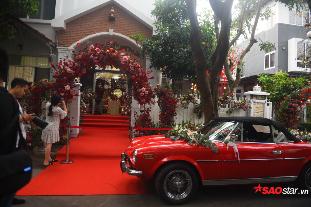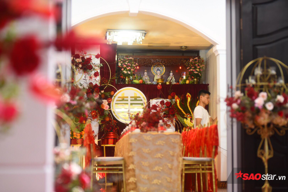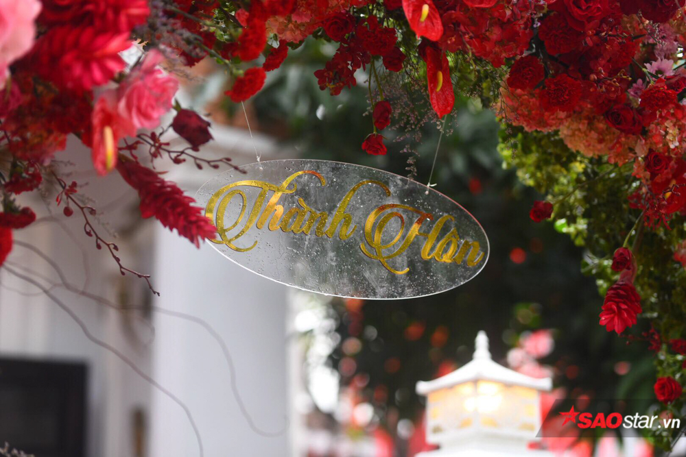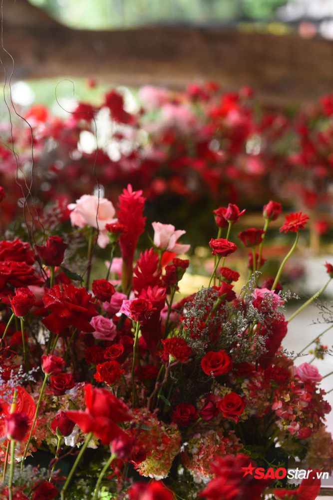 Để có được nghi thức đón dâu trọn vẹn, phía nhà trai đã chu đáo trang hoàng không gian cưới vô cùng sang trọng với sắc đỏ rực rỡ của hoa hồng theo hơi hướng mộc mạc - ấm cúng. Được biết, sự kiện trọng đại này do đích thân các thành viên trong ekip của cặp đôi nghệ sĩ lên ý tưởng thực hiện.