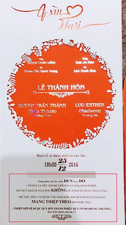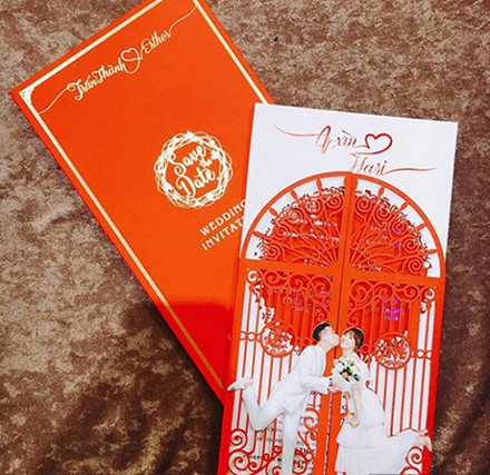 Tuy nhiên thiệp cưới của A Xìn và Hari thì có vẻ cầu kì hơn.