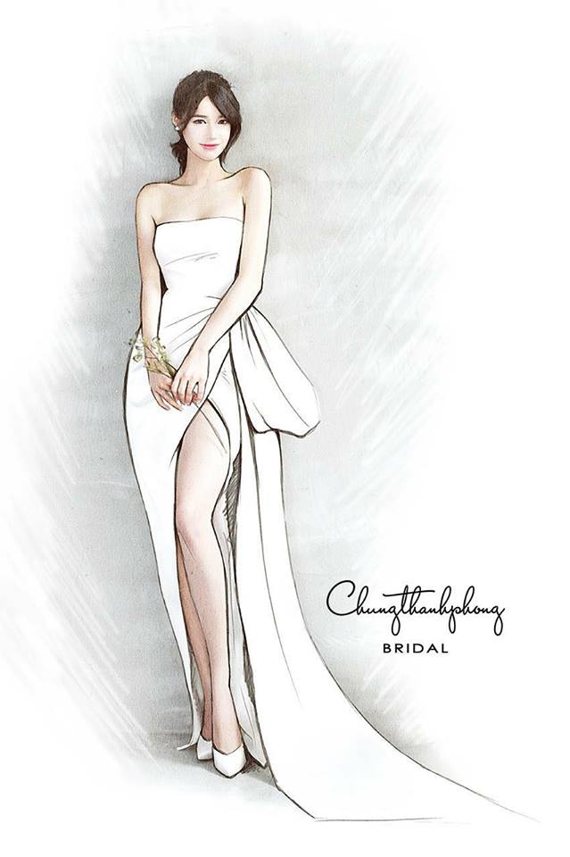 Hiện tại, Chung Thanh Phong cũng đã 'tung ra' những bản thảo váy cưới mà Nhã Phương sẽ mặc vào 25/09 sắp tới. Được biết, sẽ có 3 chiếc váy cưới đặt riêng cho Nhã Phương, cả ba đều mang tông màu trắng tinh khôi, nhẹ nhàng, thanh thoát như chính tính cách của Nhã Phương. Anh cho biết mỗi sản phẩm mình làm ra đều là tất cả tâm huyết của anh và ekip, mỗi chiếc váy cưới đều sẽ mang một 'màu sắc' riêng phù hợp nhất với người mặc nó.