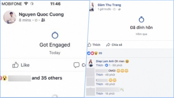 Cả hai cùng công khai trạng thái “Đã đính hôn” trên trang Facebook cá nhân.
