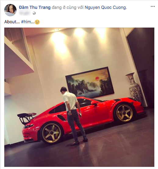 Tuy không chụp cận mặt nhưng không khó để nhận ra vóc dáng người trong bài đăng của Đàm Thu Trang chính là doanh nhân Cường Đô La. Chưa kể, cô còn “tag” thẳng tên bạn trai để thể hiện tình cảm.