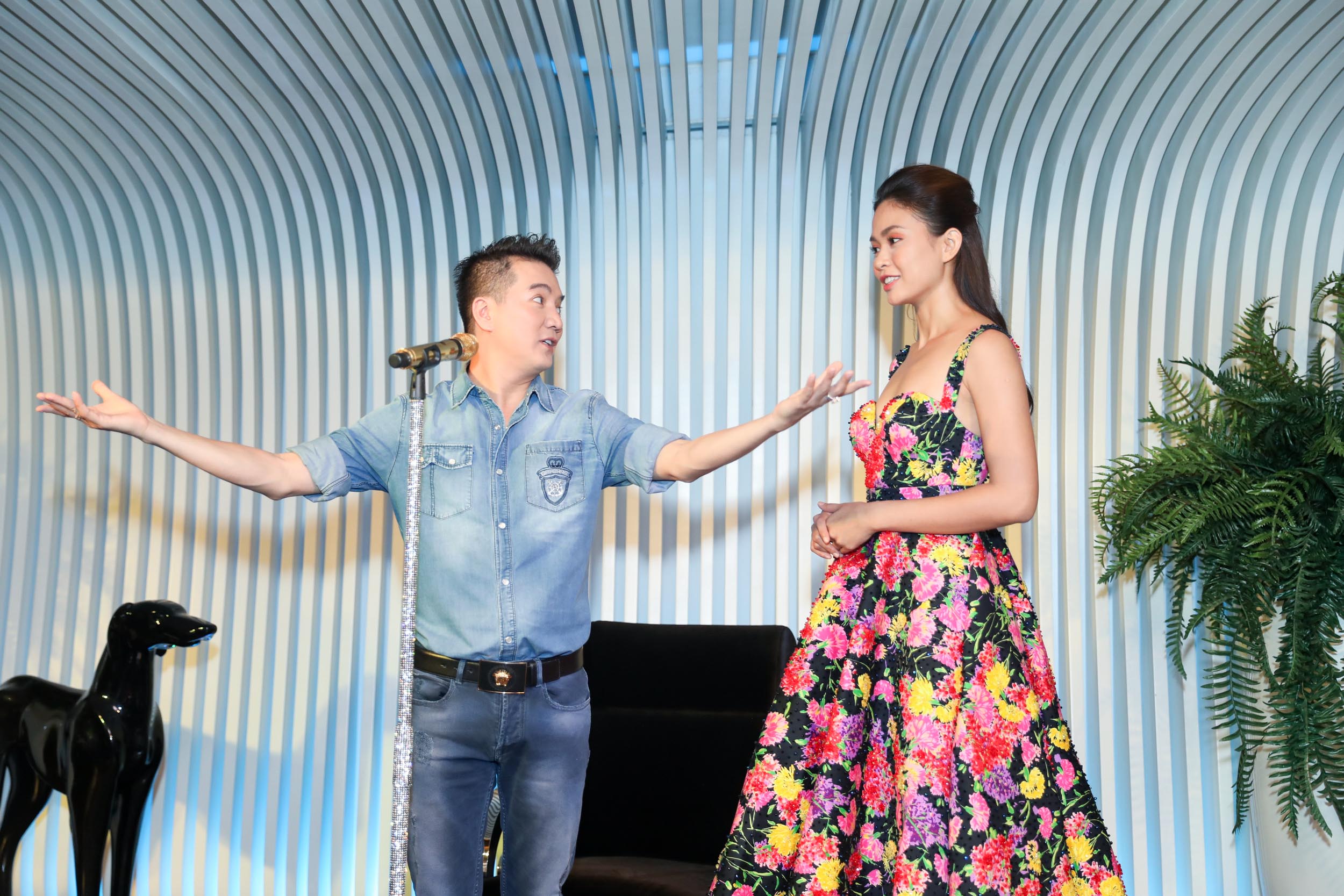 Anh chia sẻ toàn bộ bí quyết làm chủ sân khấu của một ngôi sao hàng đầu làng giải trí trong hơn 20 năm qua cho mỹ nhân từ ánh mắt, biểu cảm môi, cách cầm và gỡ mic đến cách di chuyển cơ thể,…