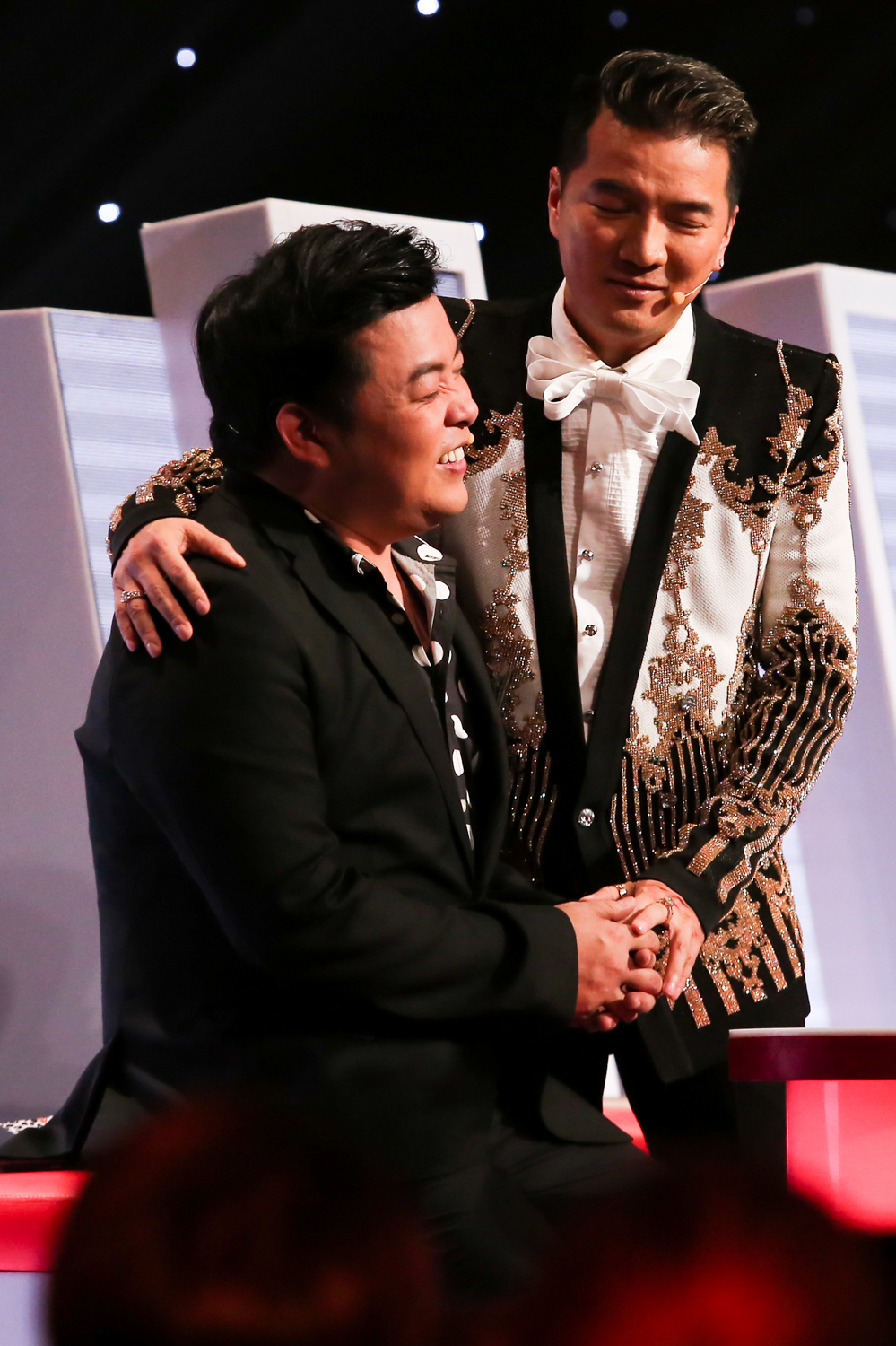Trong tập 3 vừa phát sóng (23/3), sau khi Quang Lê thuyết phục thành công thí sinh Hồng Nhung, Mr. Đàm đã “bày trò” trêu chọc “đàn em” bằng cách “thách” Quang Lê đi một vòng trên sân khấu.