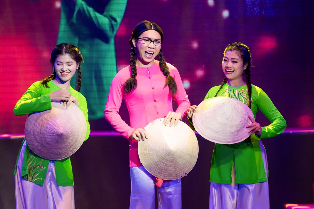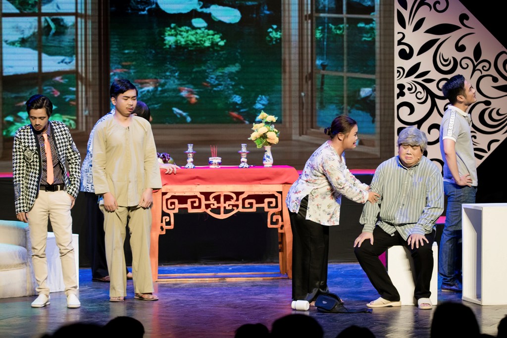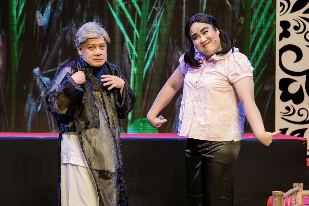 Trong trích đoạn này, danh hài Minh Nhí đã thể hiện được bản lĩnh sân khấu của một nghệ sĩ đi trước, khi tung hứng ăn ý cùng Gia Bảo.
