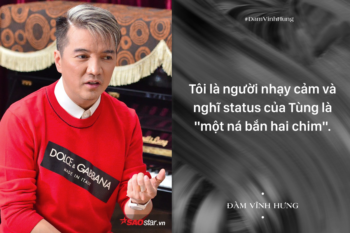 Anh cho rằng bản thân khá bất ngờ vì vốn dĩ xưa nay Tùng Leo rất khéo léo trong ngôn ngữ, cũng từng cầm mic trên sân khấu lâu năm nhưng nay lại có phát ngôn như thế. Để tìm hiểu rõ nhận xét và phản ứng của Đàm Vĩnh Hưng, SAOstar cũng có buổi gặp gỡ để lắng nghe những chia sẻ của anh về vấn đề nhạy cảm này.