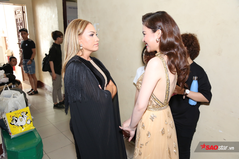 Cả hai tranh thủ chào hỏi nhau trước giờ ghi hình.