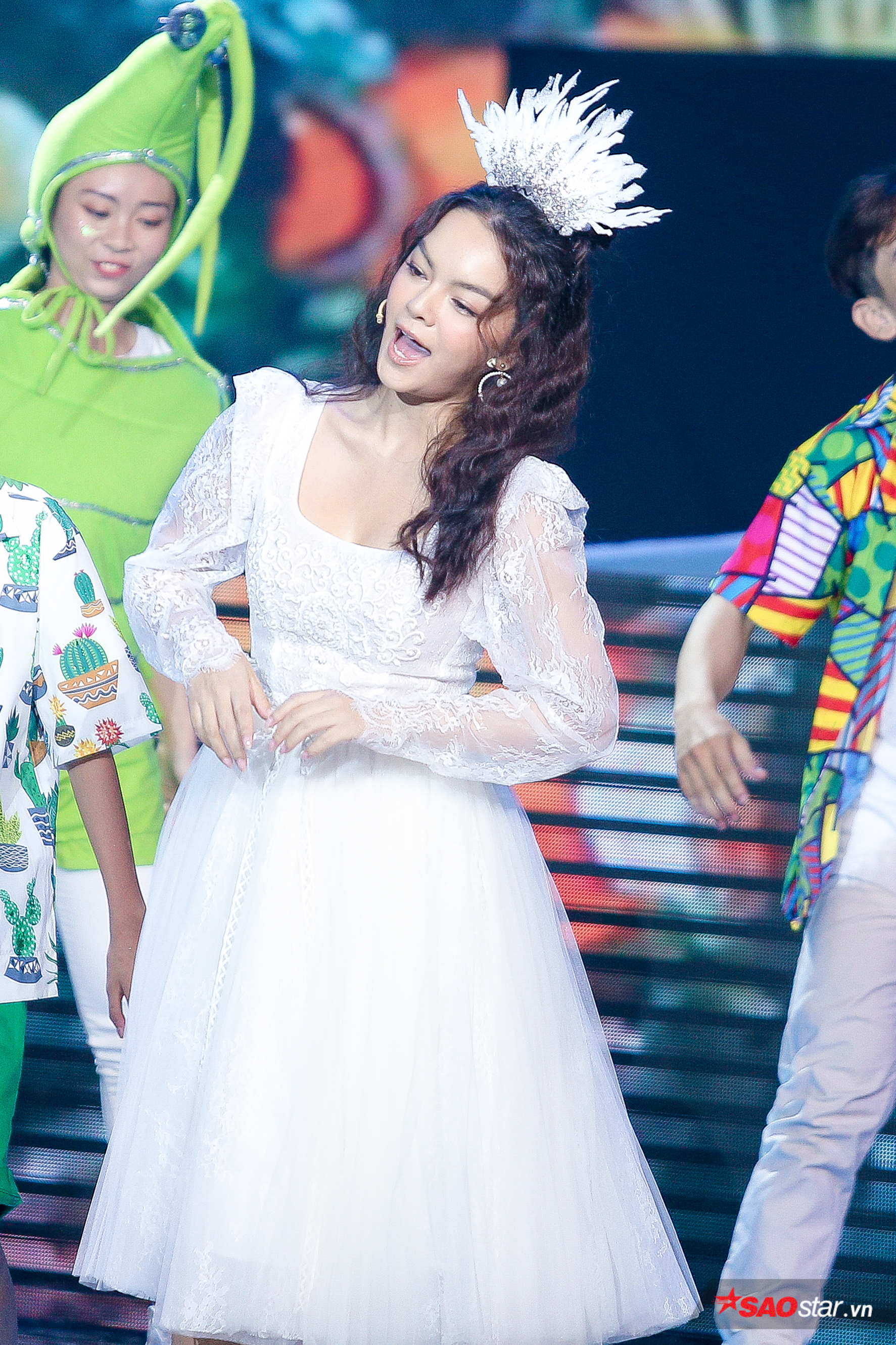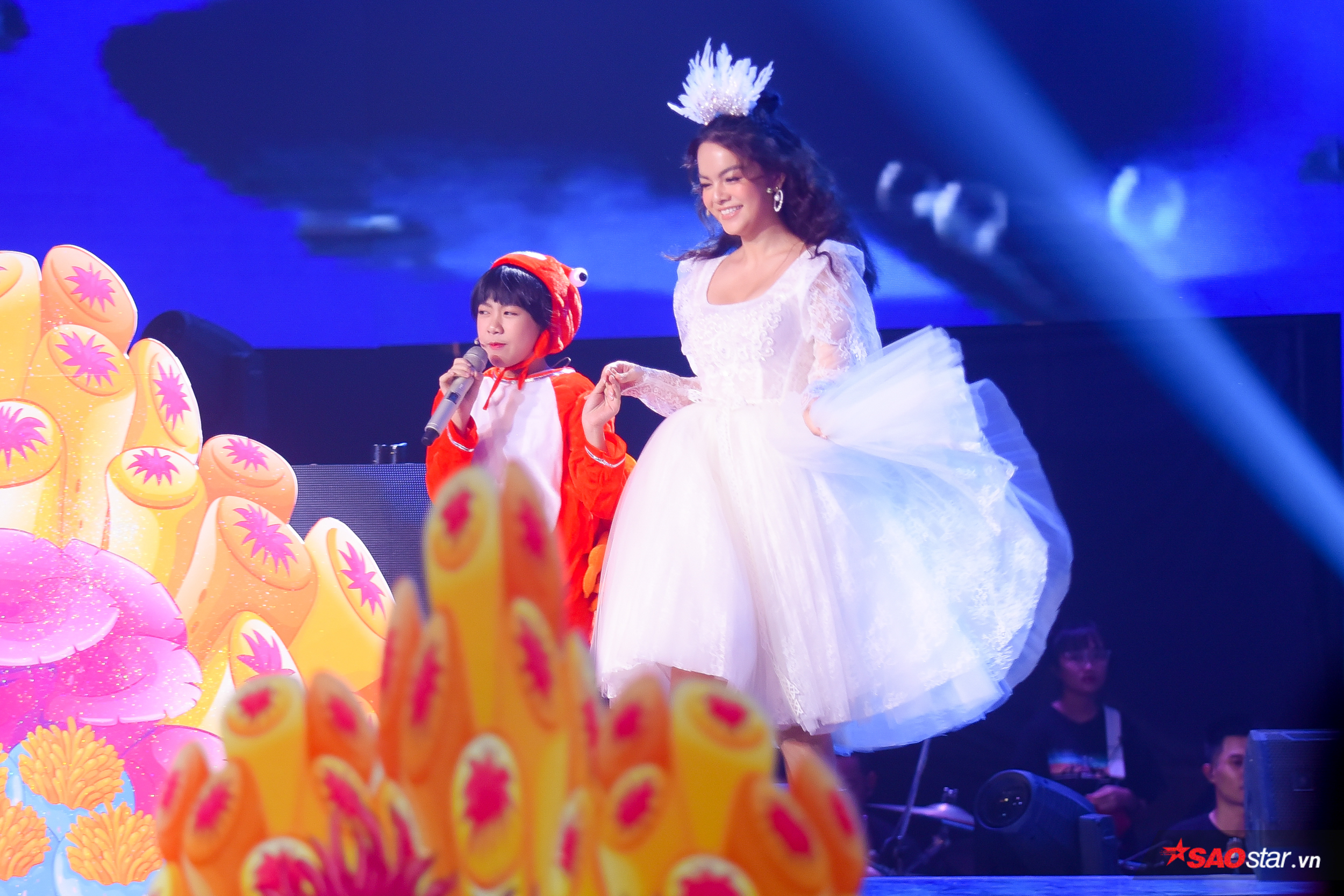 Đặc biệt, điểm nhấn màn nhạc kịch của đội “Chiến binh cầu vồng” rơi vào khoảnh khắc HLV Dương Khắc Linh bất ngờ xuất hiện với tạo hình lạ cùng góp giọng với HLV Phạm Quỳnh Anh và các học trò trong một sáng tác mới mang tên We are the future.