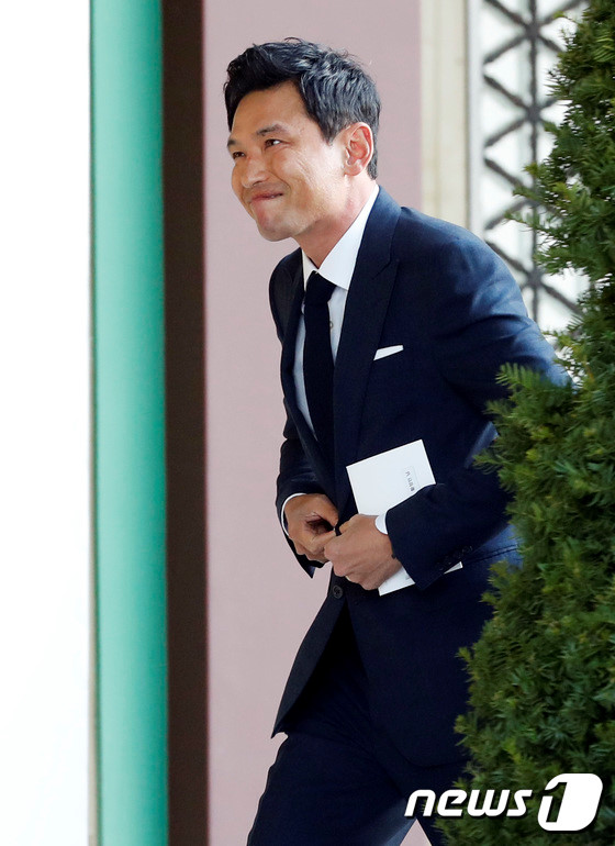 Ảnh đế Hàn Quốc Hwang Jung Min rạng rỡ đến chúc mừng đàn em.