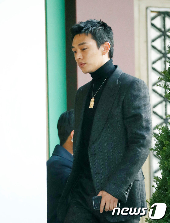 Yoo Ah In bảnh bao với bộ vest xám.